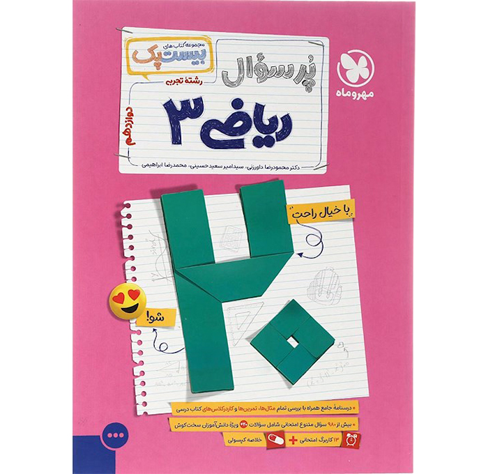 - آموزش کامل محتوای کتاب درسی به صورت درس به درس - ارائه مطالب حفظی در باکسی مجزا برای هر درس - پوشش کامل مثال ها، تمرین ها و کار در کلاس های کتاب درسی - طرح سوالات امتحانی در تیپ بندی های متنوع و مطابق با آخرین امتحان نهایی برگزار شده - پوشش کامل سوالات امتحانات نهایی گذشته - طرح سوالات دشوارتر در هر بسته ویژه دانش آموزان سختکوش - پاسخنامه واقعا تشریحی و روان برای تکمیل فرآیند یادگیری دوست عزیزم،سلام بسته ای که در دست دارید شامل 3 نوع برگه ی امتحانی است: 1. امتحان های مستمر فصل به فصل 2. امتحان های شبیه ساز نوبت اول 3. امتحان های شبه ساز نهایی + ۲ امتحان نهایی اخیر امتحان های این بسته، براساس آخرین رویکردهای طراحان در امتحانات نهایی و با رعایت جدیدترین بارم بندی اعلام شده توسط دفتر برنامه ریزی و تالیف آموزش و پرورش طراحی شده است بنابراین پیشنهاد میکنیم پس از مطالعه هر فصل از کتاب پرسوال، امتحان همان فصل را جدا کنید و در شرایط مشابه حوزه امتحانی خودتان را محک بزنید بعد از امتحان نیز با توجه به بارم بندی هر سوال در پاسخ نامه، برگه خود را تصحیح و تحلیل کنید. ما نیز برای آمادگی بیشتر شما و کسب موفقیت در امتحانات نوبت اول و نهایی،امتحان های کاربرگ را با ظاهری شبیه به برگه های امتحانی طراحی کرده ایم تا فضای حوزه امتحانی بیشتر برای شما شبیه سازی شود . در نهایت با حل سوالات دو آزمون نهایی اخیر به آمادگی کامل خواهید رسید. شما میتوانید با استفاده از کادرهای آموزشی داخل پاسخ نامه رفع اشکال کنید و از خلاصه کپسولی برای مرور مطالب مهم استفاده نمایید. به امید موفقیت شما در همه امتحانات. محتویات بسته ۲۰ پک: - کتاب پرسوال - 13 کاربرگ امتحانی - خلاصه کپسولی