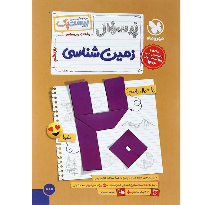 آموزش کامل محتوای کتاب درسی در قالب بسته های آموزشی پوشش کامل فعالیت ها، فکر کنیدها، پیوند با ریاضی و سایر پرسش های کتاب درسی و پاسخ به آن ها ارائه خلاصه نموداری در انتهای هر فصل برای مرور و جمع بندی مطالب طرح سوالات امتحانی در تیپ بندی های متنوع و مطابق با آخرین امتحان نهایی برگزارشده پوشش کامل سوالات امتحانات نهایی برگزارشده طرح سوالات دشوارتر در هر بسته ویژه دانش آموزان سخت کوش پاسخ نامه واقعا تشریحی و روان برای تکمیل فرایند یادگیری دوست عزیزم،سلام بسته ای که در دست دارید شامل 3 نوع برگه ی امتحانی است: 1. امتحان های فصل به فصل 2. امتحان های شبیه ساز نوبت اول 3. امتحان های شبه ساز نهایی + ۲ امتحان نهایی اخیر امتحان های این بسته، براساس آخرین رویکردهای طراحان در امتحانات نهایی و با رعایت جدیدترین بارم بندی اعلام شده توسط دفتر برنامه ریزی و تالیف آموزش و پرورش طراحی شده است بنابراین پیشنهاد میکنیم پس از مطالعه هر فصل از کتاب پرسوال، امتحان همان فصل را جدا کنید و در شرایط مشابه حوزه امتحانی خودتان را محک بزنید بعد از امتحان نیز با توجه به بارم بندی هر سوال در پاسخ نامه، برگه خود را تصحیح و تحلیل کنید. ما نیز برای آمادگی بیشتر شما و کسب موفقیت در امتحانات نوبت اول و نهایی،امتحان های کاربرگ را با ظاهری شبیه به برگه های امتحانی طراحی کرده ایم تا فضای حوزه امتحانی بیشتر برای شما شبیه سازی شود . در نهایت با حل سوالات دو آزمون نهایی اخیر به آمادگی کامل خواهید رسید. شما میتوانید با استفاده از کادرهای آموزشی داخل پاسخ نامه رفع اشکال کنید و از خلاصه کپسولی برای مرور مطالب مهم استفاده نمایید. به امید موفقیت شما در همه امتحانات. محتویات بسته ۲۰ پک: - کتاب پرسوال - 13 کاربرگ امتحانی - خلاصه کپسولی