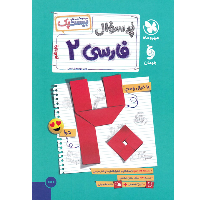 - موشکافی و تحلیل کامل متن کتاب درسی به سبک کتابنامه - درسنامه های کاربردی، کاملا مطابق با رویکرد امتحان نهایی - کاملترین بانک سوالات امتحانی و نهایی - طبقهبندی سوالات به صورت درس به درس و سطر به سطر در سه قلمرو ادبی، فکری و زبانی - تنوع فوقالعاده سوالات و پوشش خط به خط کتاب درسی - پیشبینی سوالات سطح بالای امتحان نهایی با طرح سوالات بیست ساز - شامل کامل ترین بانک سوالات امتحانات نهایی برگزار شده در سال های اخیر - پاسخنامهی واقعا تشریحی به همراه نکات امتحانی - پاسخگویی به تمام کارگاه های متن پژوهی کتاب درسی ویژگی های کاربرگ امتحانی: دوست عزیزم،سلام بسته ای که در دست دارید شامل 3 نوع برگه ی امتحانی است: 1. امتحان های مستمر فصل به فصل 2. امتحان های شبیه ساز نیم سال اول 3. امتحان های شبه ساز نهایی + ۲ امتحان نهایی اخیر سوالات امتحان های این بسته، براساس آخرین رویکردهای امتحانات نهایی و کاملا مشابه برگه های امتحانی و با رعایت جدیدترین بارم بندی طراحی شده است. بنابراین پیشنهاد میکنیم پس از مطالعه هر فصل از کتاب پرسوال، امتحان همان فصل را جدا کنید و در شرایط مشابه نهایی از خودتان امتحان بگیرید و سپس با توجه به بارم بندی هر سوال در پاسخ نامه، برگه خود را تصحیح و تحلیل کنید. همچنین جهت آمادگی بیشتر شما و کسب موفقیت در امتحانات نوبت اول و نهایی،برگه های امتحانی شبیه ساز در نظر گرفته ایم تا فضای این امتحانات را برای خود شبیه سازی کنید. در نهایت با حل سوالات دو آزمون نهایی اخیر به آمادگی کامل خواهید رسید. شما میتوانید با استفاده از کادرهای آموزشی داخل پاسخ نامه رفع اشکال کنید و از خلاصه کپسولی برای مرور مطالب مهم استفاده نمایید. به امید موفقیت شما در همه امتحانات. ویژگی های خلاصه کپسولی: - مرور موضوعی قلمروها - مهمترین و پرتکرارترین مطالب: 1. واژهنامه و املا 2. دستور زبان فارسی 3. آرایه های ادبی 4. تاریخ ادبیات 5. درک مطلب محتویات بسته ۲۰ پک: - کتاب پرسوال - 15 کاربرگ امتحانی - خلاصه کپسولی