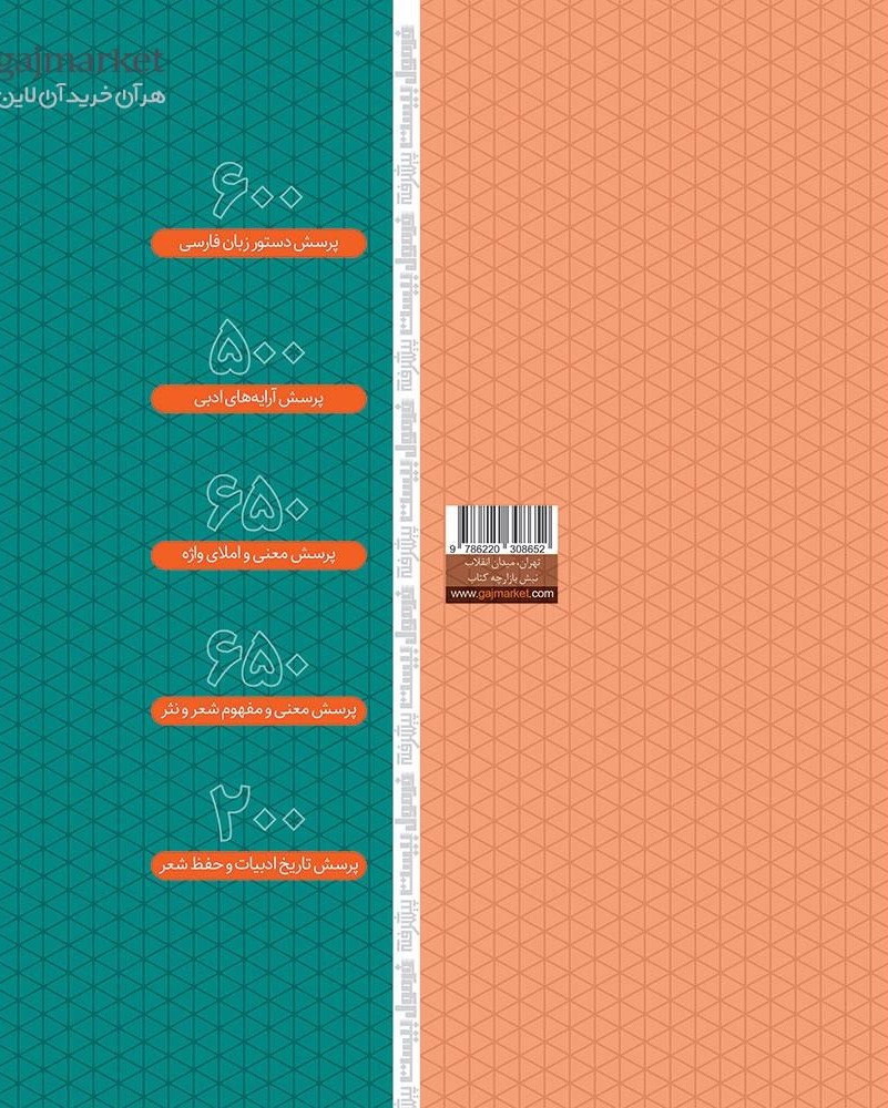 کتاب فارسی موضوعی دوازدهم سری فرمول بیست گاج. یک کتاب جامع و کامل برای امتحانات دی ماه و نهایی خرداد ماه مناسب برای هر سه رشته علوم تجربی، ریاضی فیزیک و علوم انسانی اگر نمره بالای 18 در این درس میخوای این کتاب رو بهت پیشنهاد می کنم. چرا؟ بخاطر اینکه تمام مطالب درسی رو پوشش داده، یک درسنامه کامل و جامع داره. برای هر قسمت پس از درسنامه نمونه سوال های تالیفی قرار داده. پس از این در انتهاب کتاب چندین امتحان نهایی سال های گذشته رو برات قرار داده که شب امتحان میتونی بهشون پاسخ بدی و مطالب رو مرور کنی در آخر هم با استفاده از پاسخنامه تشریحی به نقاط قوت و ضعفت در این درس پی ببری. برو که این درسو بترکونی (: